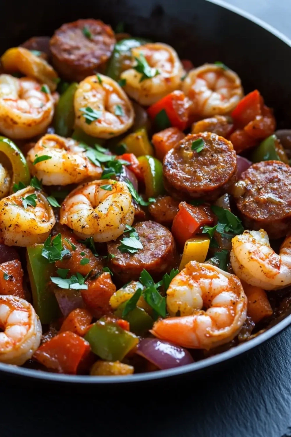 This Cajun sausage shrimp skillet brings together spicy sausage, tender shrimp, and vibrant veggies in one skillet, making dinner both quick and satisfying.