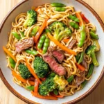 Craving something hearty and quick? This high protein beef lo mein brings tender beef, crisp veggies, and silky noodles together in a savory soy-ginger sauce that’s ready in about 30 minutes.