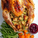 It’s easy to feel intimidated by roasting a large bird, but honestly, you don’t need anything fancy—just a sturdy roasting pan and a little patience. Serving this with a rustic bread and a simple salad can round out the meal beautifully. Sometimes I swap in a handful of chopped walnuts or dried cranberries to the stuffing for a little texture surprise, though I haven’t tried all sorts of combinations yet. And if you want to switch up the veggies, sweet potatoes or Brussels sprouts could work well, but I usually stick close to the original.