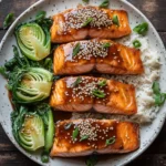 This meal isn’t about complicated techniques or rare ingredients. It’s approachable, with flavors that hit just right—not too salty or sweet, but balanced enough to make you pause and savor each bite. The glaze clings to the salmon, sticky and full of depth, while the rice soaks up every drop, and the sesame seeds add that subtle crunch. I love how the green onions scattered on top give it a little pop of color and sharpness, even if I sometimes forget to chop them finely enough.