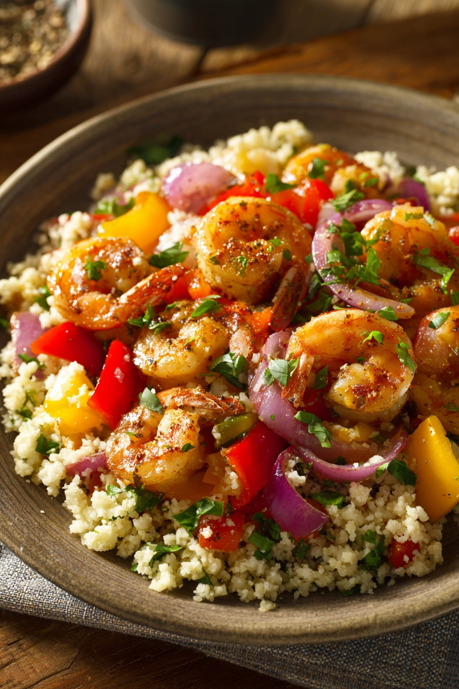 Can I make this recipe ahead of time? Yes, you can prepare the shrimp and cauliflower rice separately and store them in airtight containers in the fridge for up to three days. Reheat gently to keep textures intact.
