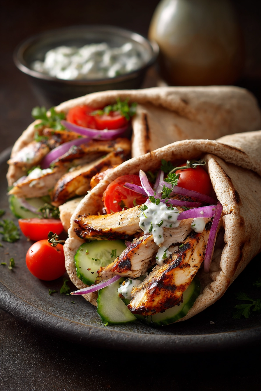 One evening, I remember the moment the kitchen filled with the aromas of garlic, lemon, and oregano mingling with the smoky char from the grill pan. The sound of sizzling chicken promised something delicious was almost ready. As I wrapped the juicy chicken, cool cucumbers, sweet cherry tomatoes, and tangy tzatziki in warm whole wheat pita, I felt a rush of excitement. The first bite was a perfect harmony of creamy, savory, and crisp textures that made me savor each mouthful. It was a simple meal but felt like a celebration of freshness and flavor.