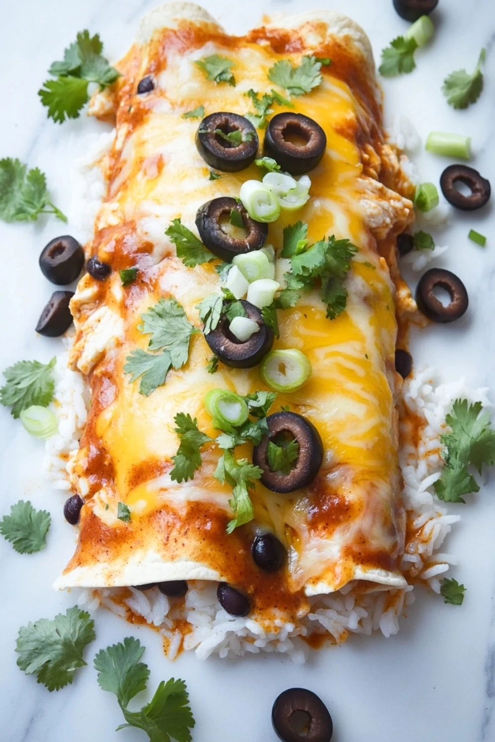 Garnish with chopped cilantro, sliced black olives (if using), and diced green onions before serving.