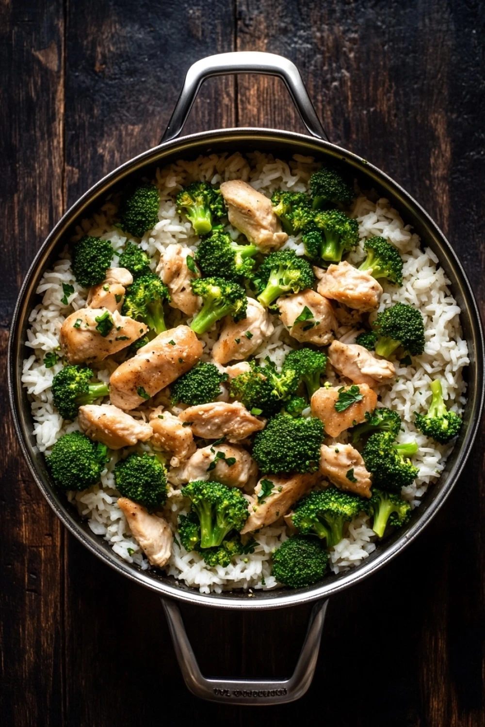 A simple and delicious one-pot meal featuring tender chicken, fluffy rice, and fresh broccoli, perfect for a quick and wholesome dinner.