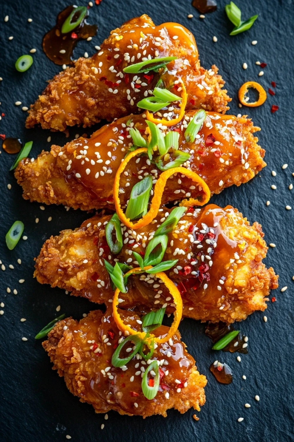 - Crispy chicken coated in a tangy, sweet, and slightly spicy orange sauce that feels vibrant even when reheated.