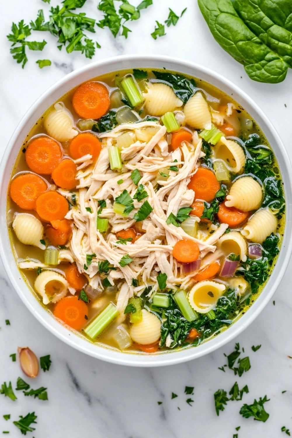 A comforting and hearty chicken pasta soup inspired by Johnna Allen’s dinner style. This soup features tender chicken, flavorful vegetables, and pasta in a savory broth, perfect for a cozy meal.
