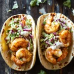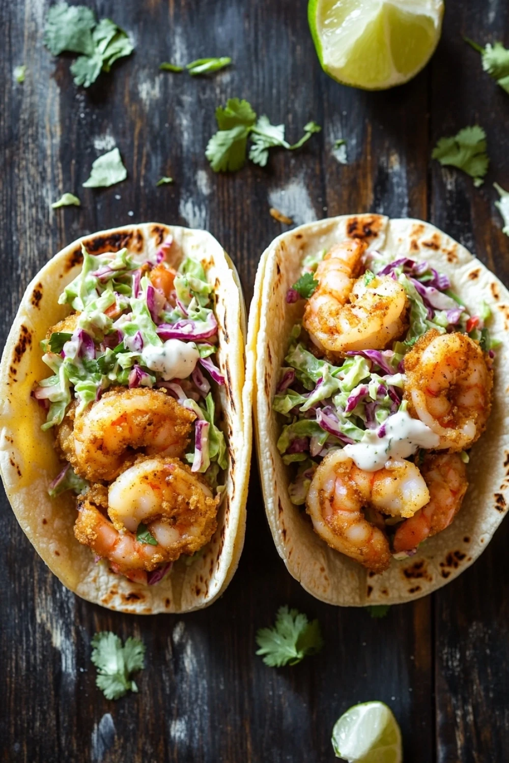 Crispy air fryer shrimp served in warm corn tortillas topped with a refreshing cabbage slaw and a zesty lime crema. Perfect for a quick and flavorful weeknight dinner.