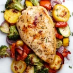 I remember the first time I made this dish; I was juggling emails and a phone call, chopping veggies somewhere between distracted moments. The kitchen smelled like garlic and thyme, and the sizzle of the chicken hitting the hot pan was oddly comforting. The vegetables roasted until they were tender with edges caramelized just right, adding a subtle sweetness and depth. It wasn’t perfect—some veggies got a bit more charred than others—but that rustic imperfection made it feel homemade, real. Sitting down with a plate full of colorful veggies and juicy chicken, I felt like I’d done something good for myself, even if I’d rushed through parts of it.